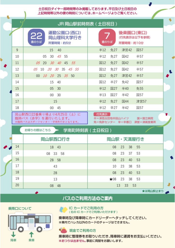 ※臨時バスは岡山駅西口~ノンストップ~スポーツセンター・学南町行きとなります。