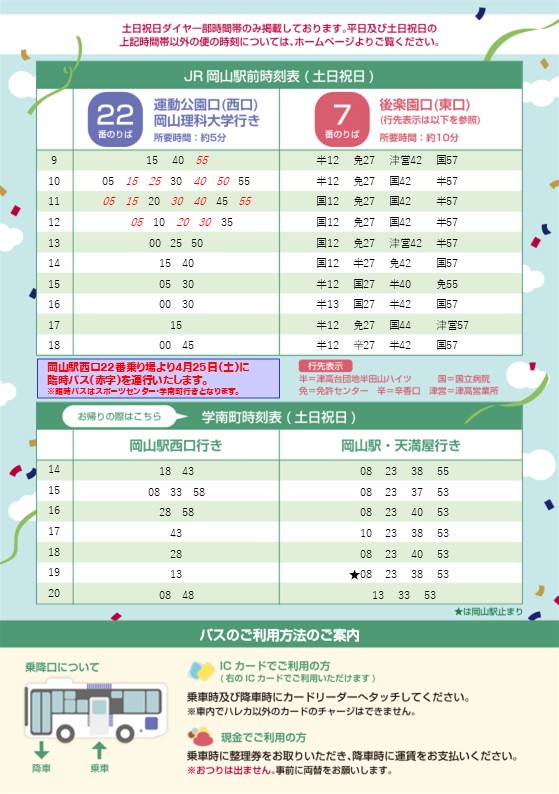 ※臨時バスは岡山駅西口~ノンストップ~スポーツセンター・学南町行きとなります。